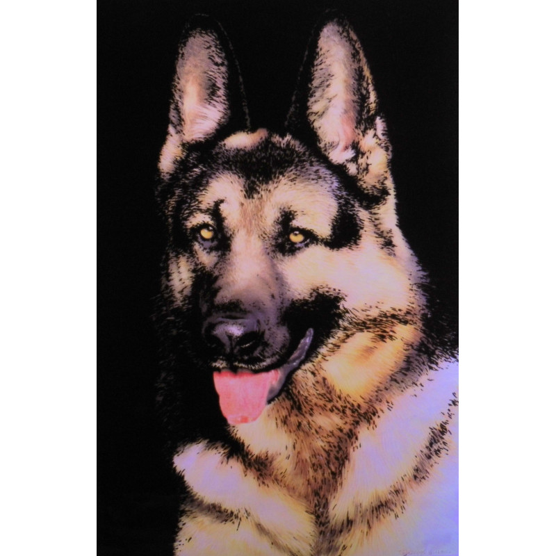 Poster en relief, texture velours, couleur fluorescent. Le poster réagit à la lumière noire, bleue ou violette, et crée une image en relief 3D. Le motif et/ou le personnage semble sortir du décor. Dimansions 90 x 60cm