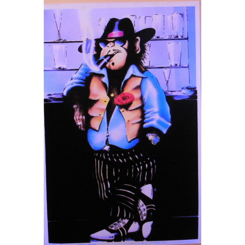Poster en relief, texture velours, couleur fluorescent. Le poster réagit à la lumière noire, bleue ou violette, et crée une image en relief 3D. Le motif et/ou le personnage semble sortir du décor. Dimansions 90 x 60cm