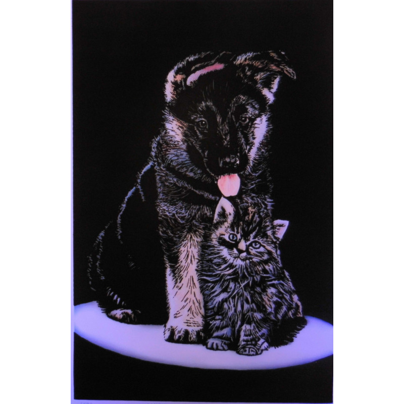 Poster en relief, texture velours, couleur fluorescent. Le poster réagit à la lumière noire, bleue ou violette, et crée une image en relief 3D. Le motif et/ou le personnage semble sortir du décor. Dimansions 90 x 60cm