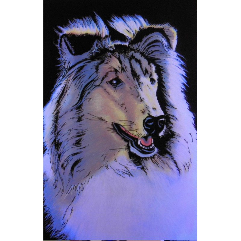 Poster en relief, texture velours, couleur fluorescent. Le poster réagit à la lumière noire, bleue ou violette, et crée une image en relief 3D. Le motif et/ou le personnage semble sortir du décor. Dimansions 90 x 60cm