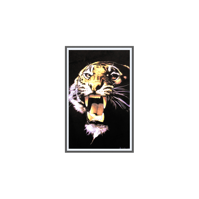 Poster en relief, texture velours, couleur fluorescent. Le poster réagit à la lumière noire, bleue ou violette, et crée une image en relief 3D. Le motif et/ou le personnage semble sortir du décor. Dimansions 90 x 60cm