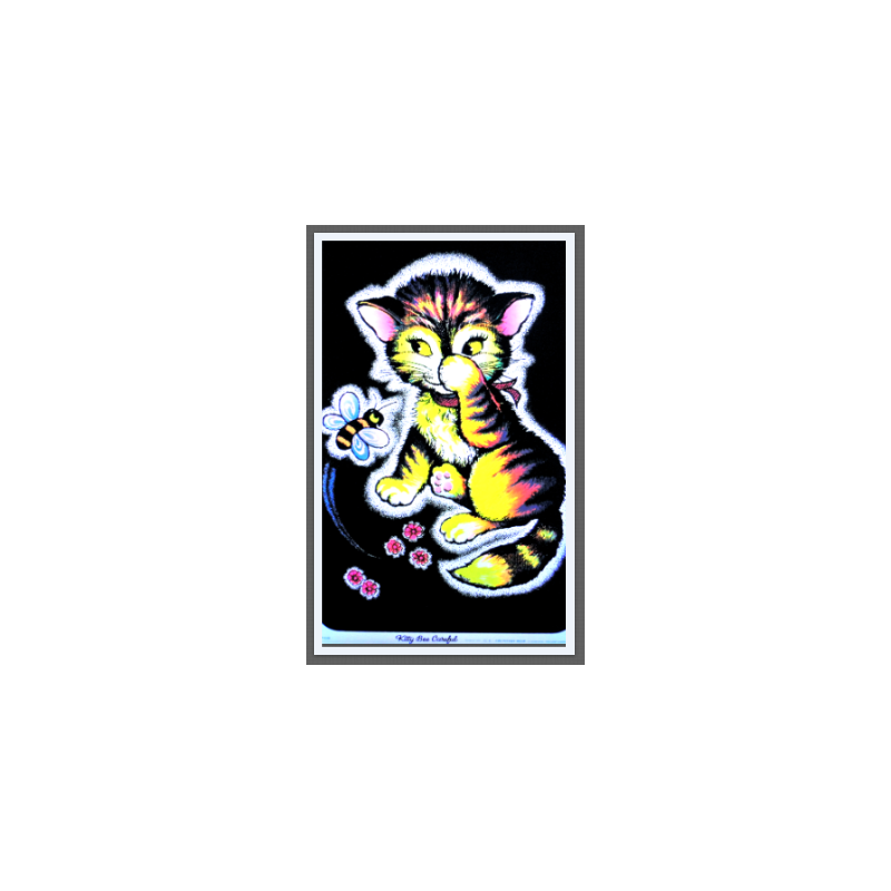 Poster en relief, texture velours, couleur fluorescent. Le poster réagit à la lumière noire, bleue ou violette, et crée une image en relief 3D. Le motif et/ou le personnage semble sortir du décor. Dimansions 90 x 60cm