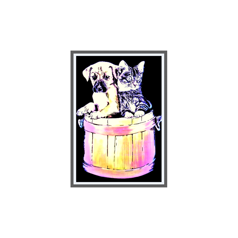 Poster en relief, texture velours, couleur fluorescent. Le poster réagit à la lumière noire, bleue ou violette, et crée une image en relief 3D. Le motif et/ou le personnage semble sortir du décor. Dimansions 90 x 60cm