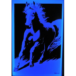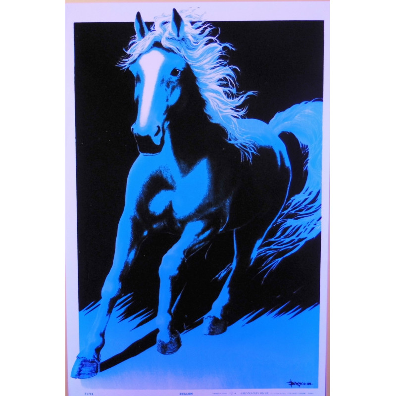 Poster en relief, texture velours, couleur fluorescent. Le poster réagit à la lumière noire, bleue ou violette, et crée une image en relief 3D. Le motif et/ou le personnage semble sortir du décor. Dimansions 90 x 60cm
