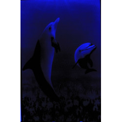 Poster en relief, texture velours, couleur fluorescent. Le poster réagit à la lumière noire, bleue ou violette, et crée une image en relief 3D. Le motif et/ou le personnage semble sortir du décor. Dimansions 90 x 60cm