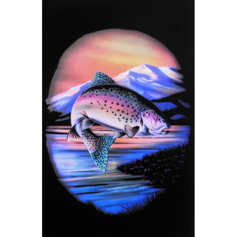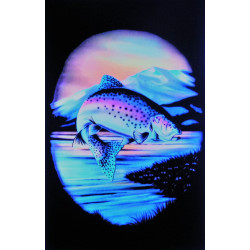 Poster en relief, texture velours, couleur fluorescent. Le poster réagit à la lumière noire, bleue ou violette, et crée une image en relief 3D. Le motif et/ou le personnage semble sortir du décor. Dimansions 90 x 60cm