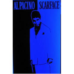 Poster en relief, texture velours, couleur fluorescent. Le poster réagit à la lumière noire, bleue ou violette, et crée une image en relief 3D. Le motif et/ou le personnage semble sortir du décor. Dimansions 90 x 60cm