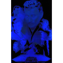 Poster en relief, texture velours, couleur fluorescent. Le poster réagit à la lumière noire, bleue ou violette, et crée une image en relief 3D. Le motif et/ou le personnage semble sortir du décor. Dimensions 90 x 60cm