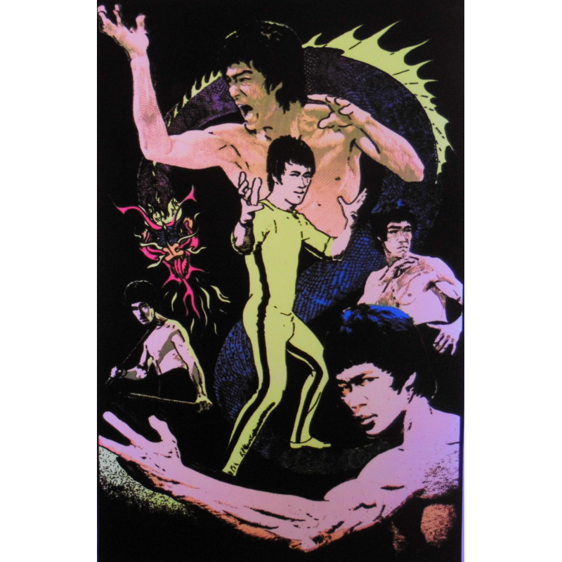Poster en relief, texture velours, couleur fluorescent. Le poster réagit à la lumière noire, bleue ou violette, et crée une image en relief 3D. Le motif et/ou le personnage semble sortir du décor. Dimensions 90 x 60cm