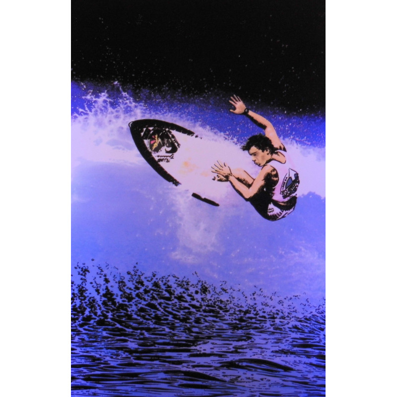 Poster en relief, texture velours, couleur fluorescent. Le poster réagit à la lumière noire, bleue ou violette, et crée une image en relief 3D. Le motif et/ou le personnage semble sortir du décor. Dimansions 90 x 60cm
