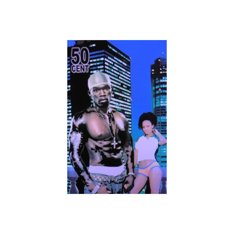 Poster en relief, texture velours, couleur fluorescent. Le poster réagit à la lumière noire, bleue ou violette, et crée une image en relief 3D. Le motif et/ou le personnage semble sortir du décor. Dimansions 90 x 60cm